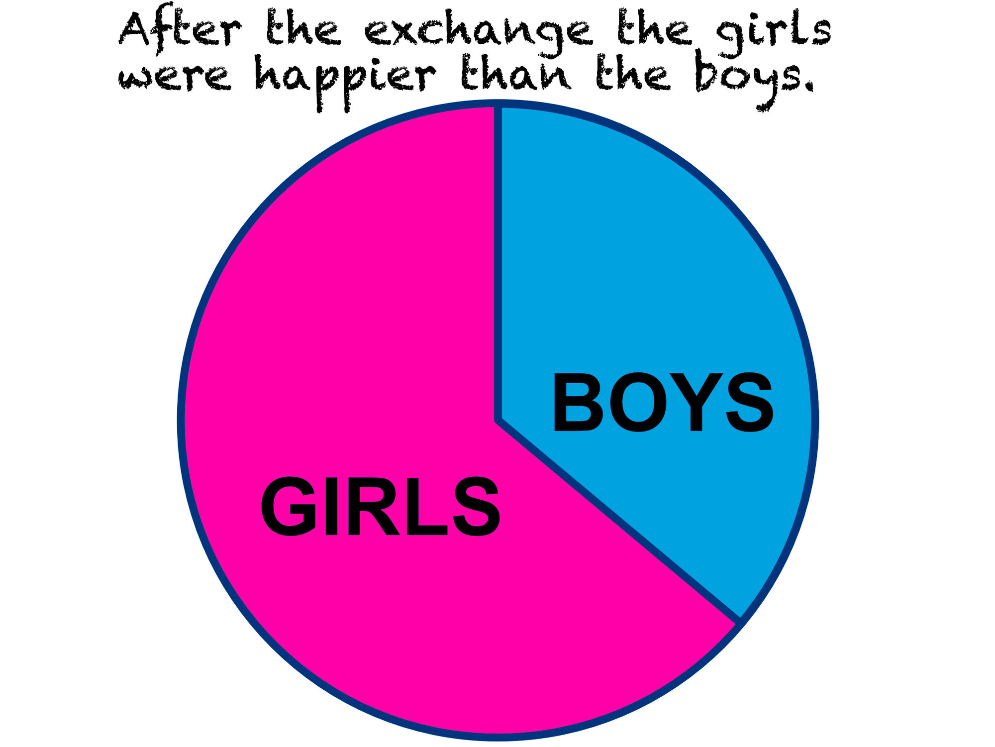 By the use of the graphic, it seems we are saying that the girls were twice as happy as the boys right at the snapshot after the exchange.